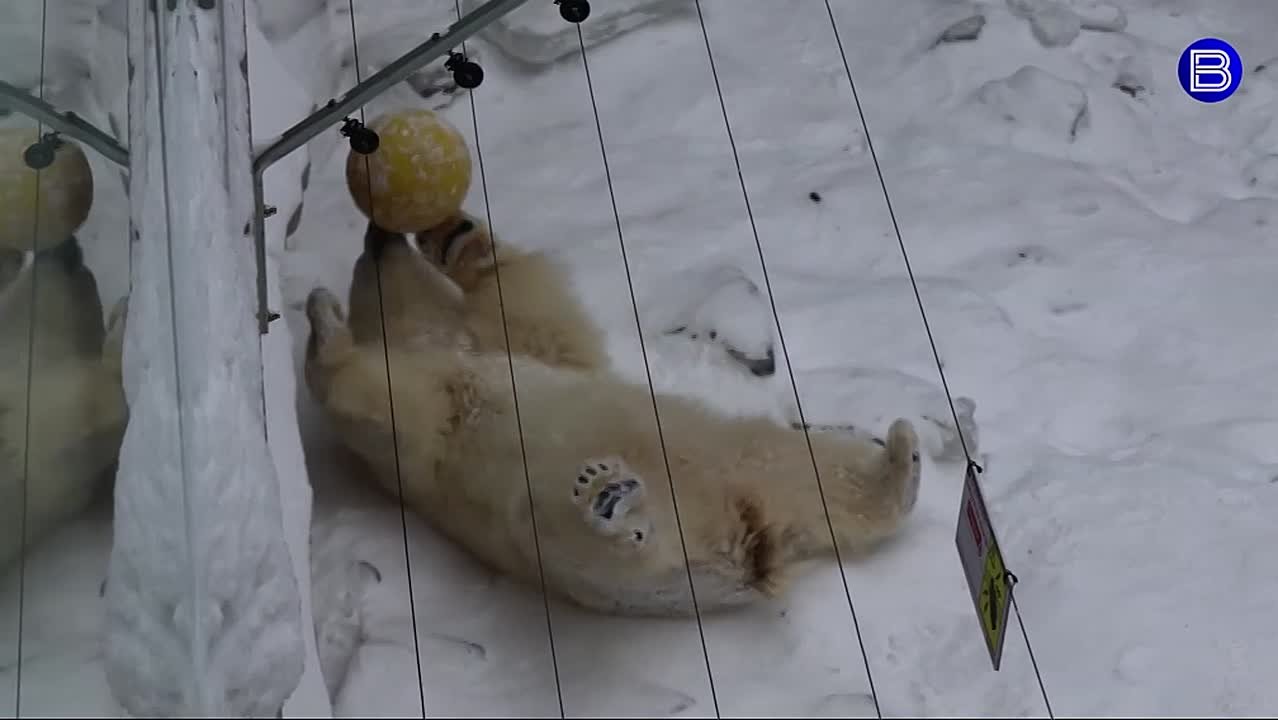 В новосибирском зоопарке белая медведица Белка устроила настоящее цирковое шоу! Любимица публики неспешно подползла к мячу и вдруг начала жонглировать.