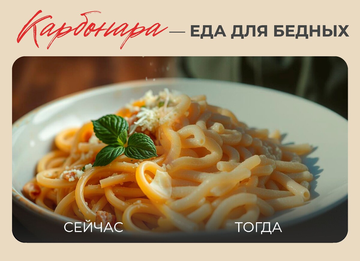 Карбонара возникла из необходимости: труд тиражирует жертвенность, а сытная еда — идеальное решение для восстановления сил.
