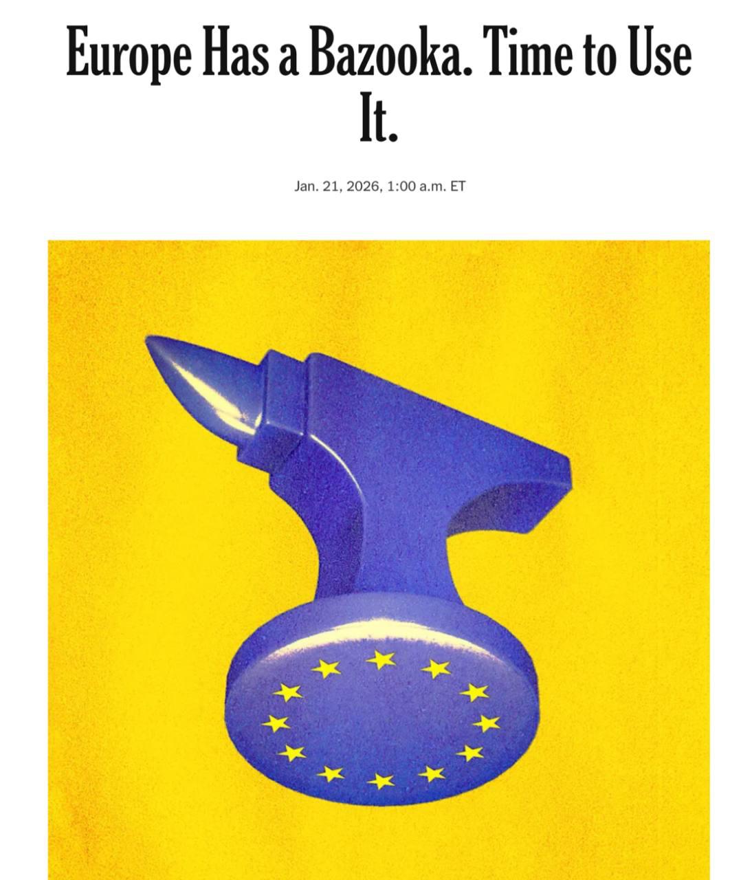 Американское издание публикует мнение профессора Генри Фаррелла, который призывает Европейский союз перейти от уступок к стратегии сдерживания в ответ на экономическое давление со стороны администрации Дональда Трампа. Поводом стала угроза новых тарифов против восьми европейских стран в связи с отказом продать США Гренландию. Автор утверждает, что единственным способом сохранить независимость ЕС является готовность к эскалации и использованию своего главного экономического инструмента — так называемой «торговой базуки».