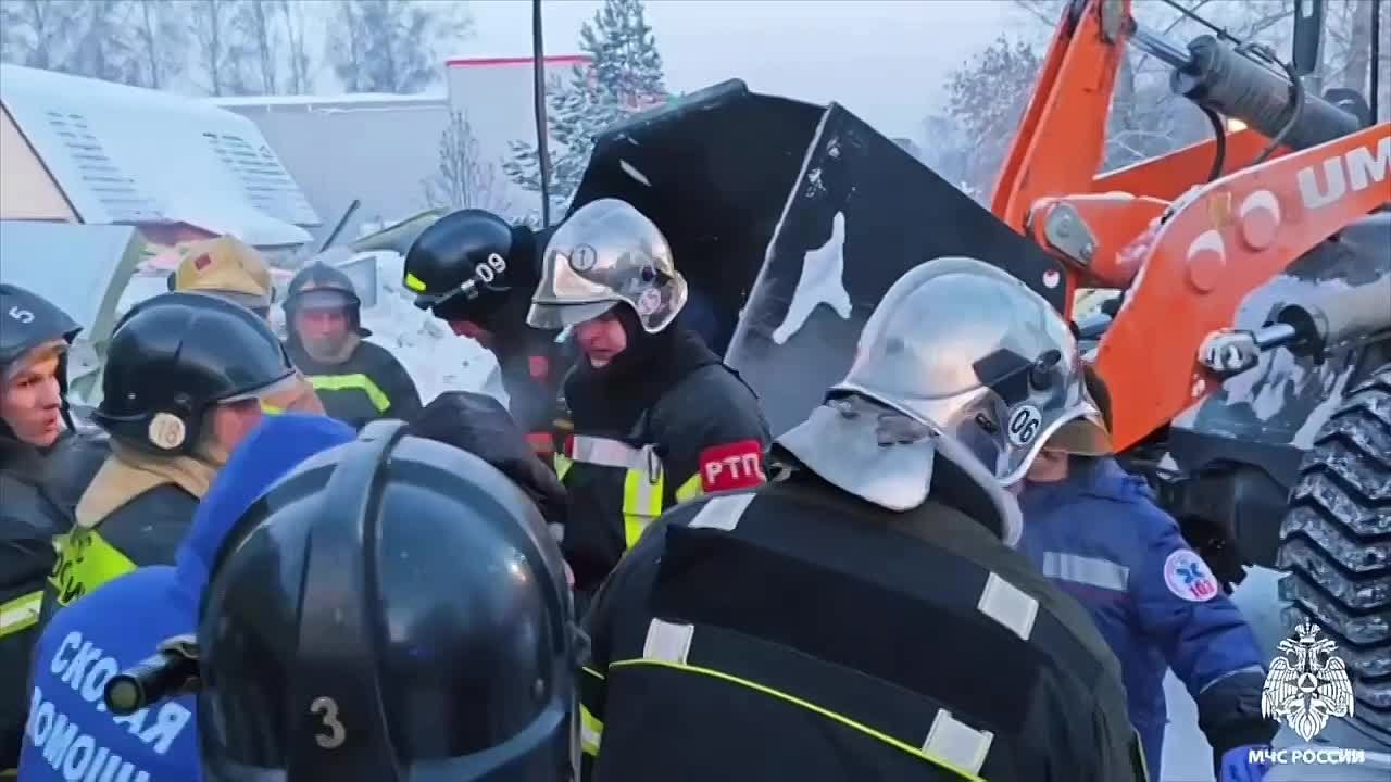 Кадры спасения женщины, пострадавшей при обрушении ТЦ в Первомайском районе Новосибирска.