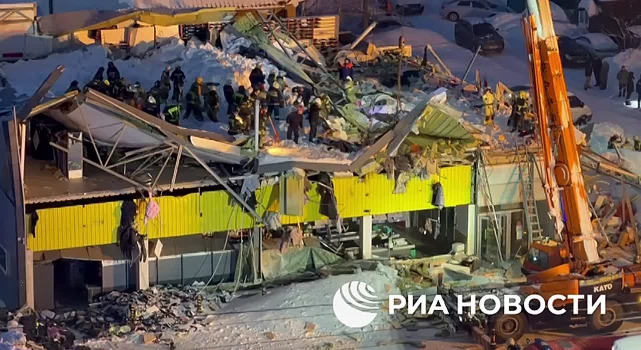 Так выглядит с высоты разбор завалов в обрушившемся ТЦ в Новосибирске.