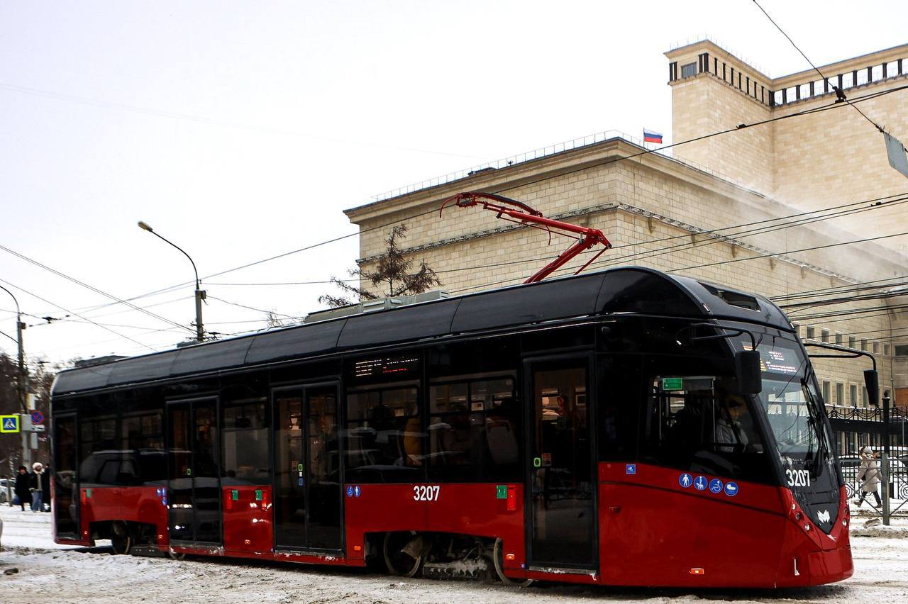 Полностью обновили подвижной состав на трамвайном маршруте № 13 — сегодня он на 100 % укомплектован чёрно-красными вагонами модели Т-701.