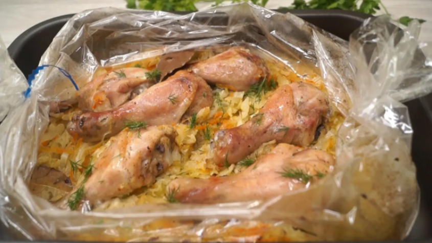 Ужин за считанные минуты: капуста с курицей в рукаве.