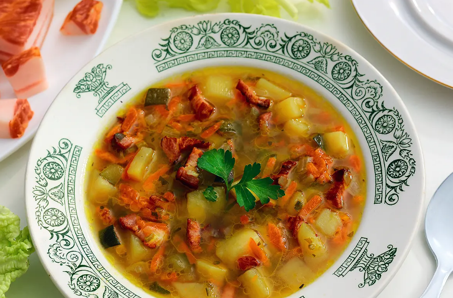 Приправить суп солью, перцем и специями по вкусу. Тогда остатки еды закутаются в уютный аромат, и можно подавать на стол.