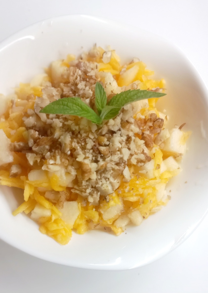 Начнем с тыквы. Она очищается от кожуры и натирается на терке. Этот яркий овощ не только вкусный, но и полезный. Его можно употреблять в свежем виде – вкус страстной тыквы удивит каждого!