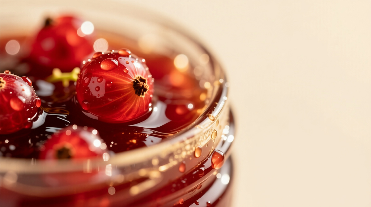 Ее удивительный рубиновый цвет и желирующая текстура без использования желатина обуславливаются высоким содержанием пектина.