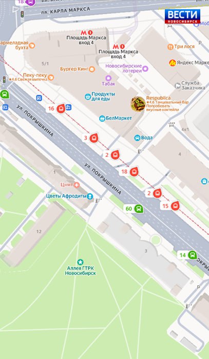 Пробка из вагонов собралась на площади Карла Маркса. Подписчики насчитали не менее семи трамваем разных маршрутов – 2, 3, 15, 16 и 18. Это подтверждают и онлайн карты города.