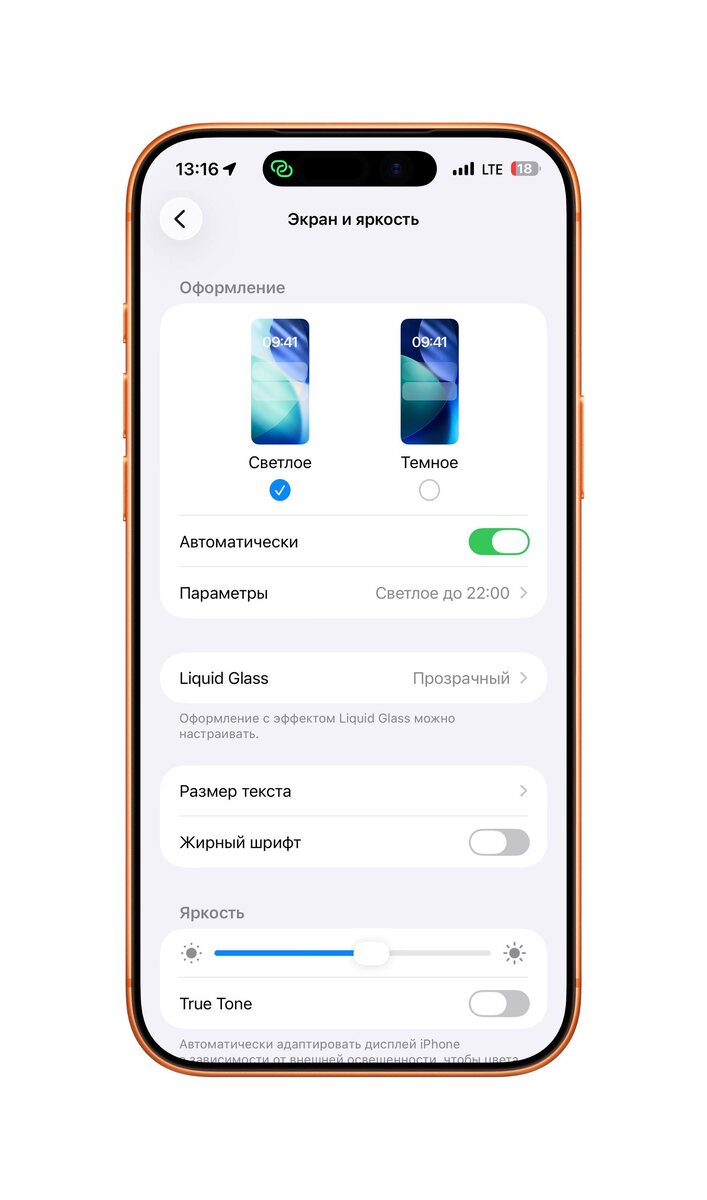 Чтобы убрать или настроить эффект, достаточно пройти в настройки устройства: Экран и яркость — Liquid Glass. Там можно выбрать либо стеклянный прозрачный вид, либо его затемнение. Такая простая настройка позволяет быстро адаптировать внешний вид под освещение и задачи на конкретный момент.