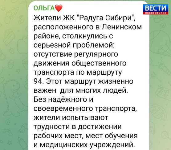 Директор ИП-перевозчика, который обслуживает маршрут № 94, Вячеслав Кобенко отказался разговаривать с редакций «Вести Новосибирск». Он сослался на опыт общения с журналистами, который ему не понравился, и отправил СМИ в мэрию.