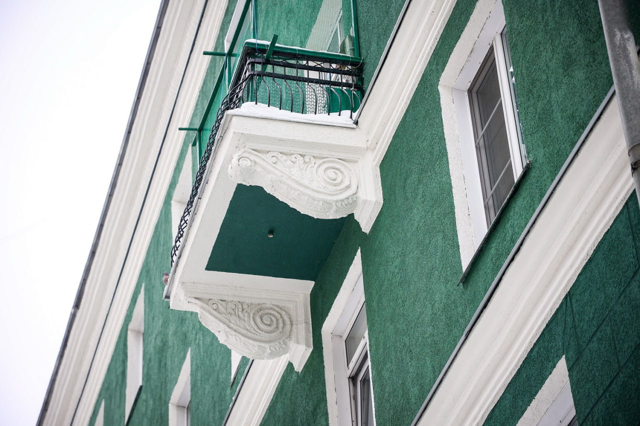 В прошлом году пятиэтажке на Ватутина, 4 в Ленинском районе капитально отремонтировали фасад. Роскошный декор неоклассические лепнину и колонны акцентировали белым и чёрным, стены выкрасили насыщенно-изумрудным цветом. В итоге простоявшее много лет уставшим здание превратилось в яркий образец имперской архитектуры. Мимо такого невозможно пройти просто так обязательно остановишься с репликой: Вот это да!