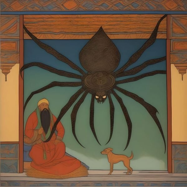 Размышления продавца прервались простой бытовой сценой: он бросил окурок, и ближайший пес подхватил его, спрятав в свою нора при этом животное радостно завилял хвостом. Случай принёс в картину оттенок обыденности, но не снял тревоги по поводу происхождения продуктов и их возможного воздействия на покупателей.
