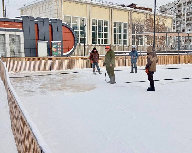 На Торговой площади началась интересная и нестандартная процедура: полировка льда с помощью кипятка. Многие могут удивиться, но именно горячая вода придаёт льду идеальное качество.