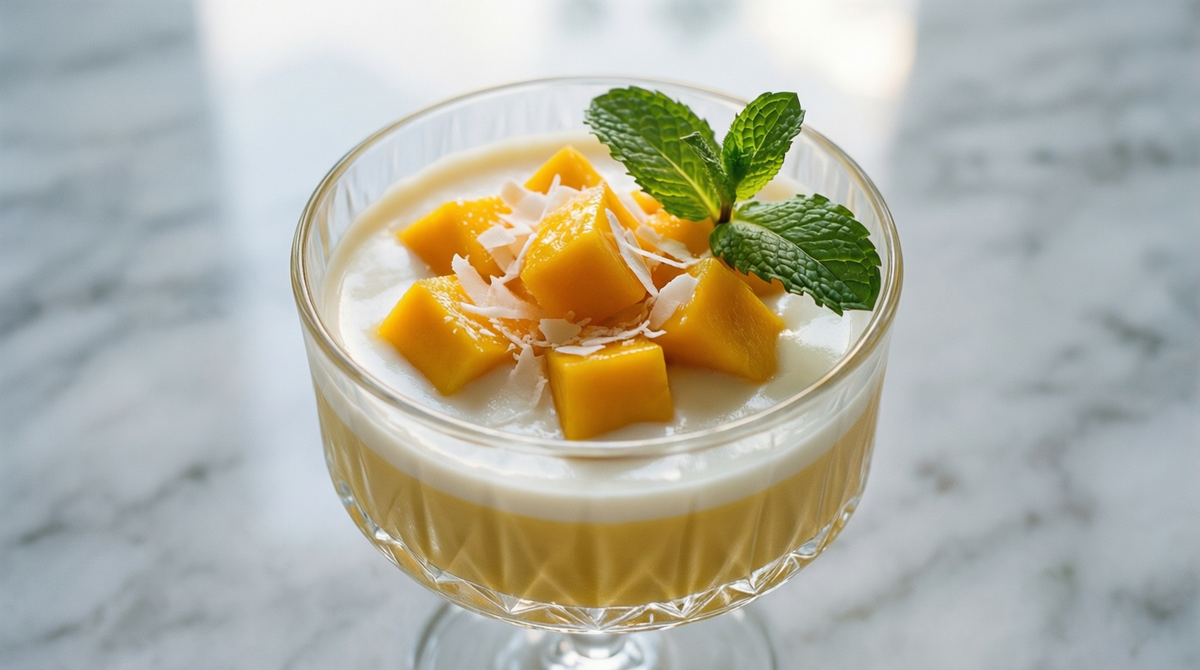 Этот десерт представляет собой уникальное сочетание манго и кокоса, создающее гармонию вкусов.