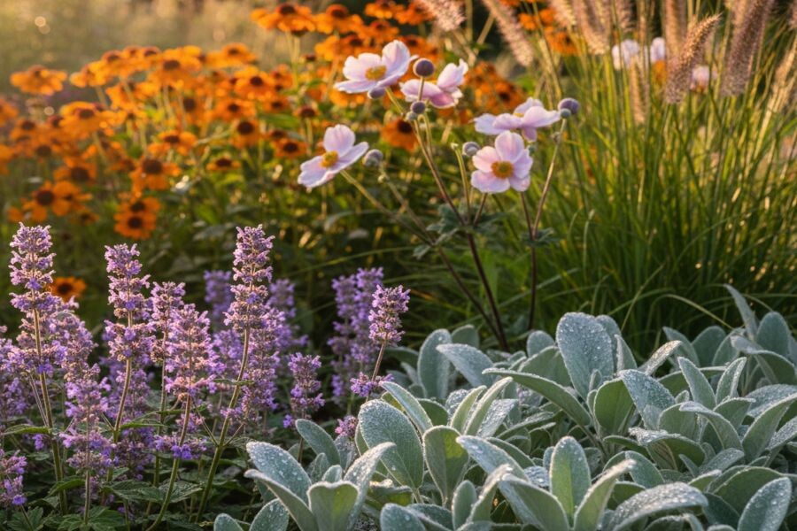 3. **Цветущие круглый год:** Эхинацея, Рудбекия, Гелениум.