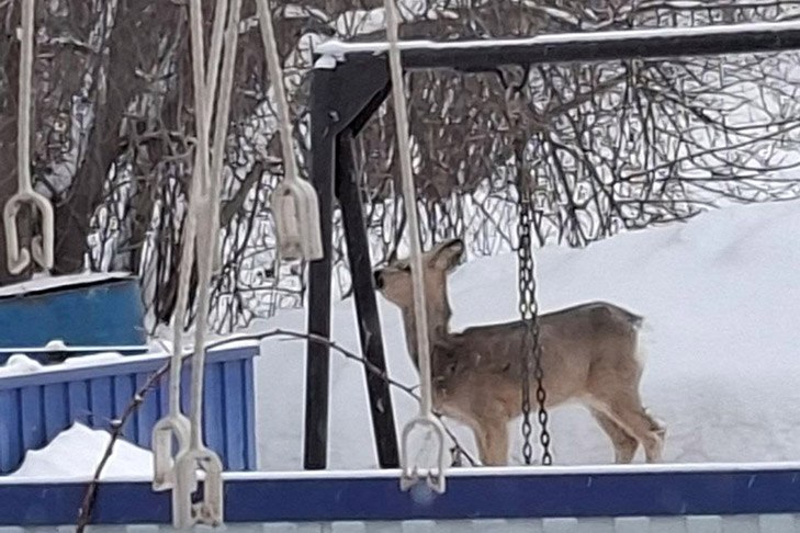 К дому жителей улицы Линейной в Тогучине подошла косуля.
