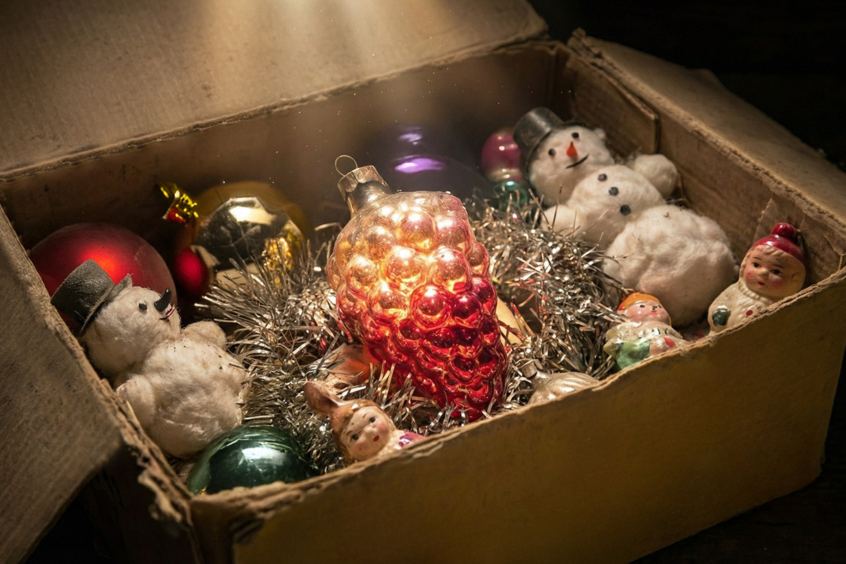 Константин Цуркан, технолог проекта «Агора Вайнери», вспоминает, как в детстве помогал бабушке наряжать елку в ее доме под Бахчисараем. Среди всех игрушек его особенно привлекала виноградная лоза из стекла — она была старинной и переливалась розовато-гранатовыми оттенками. К его сожалению, однажды игрушка пропала, и он долго сожалел о ее утрате. Спустя годы, разбирая чердак бабушкиного дома, Константин обнаружил ту самую игрушку в старой коробке. Это открытие стало для него символом возвращения к детским воспоминаниям и глубоких чувств.