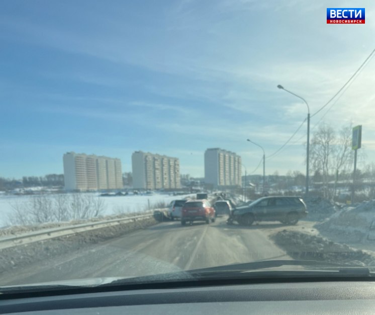На Каменском шоссе Новосибирска столкнулись два автомобиля. Судя по фото с места, один из водителей выехал с второстепенной дороги и не уступил проезд другому.