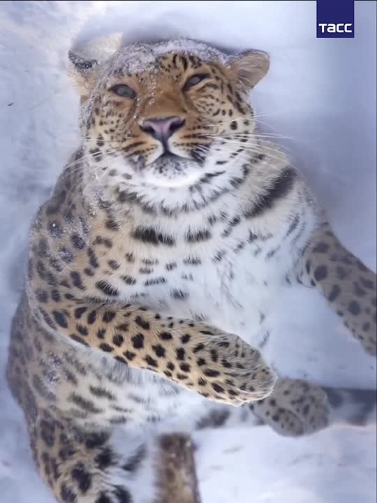 Снежная прогулка леопарда Налы в Новосибирском зоопарке им. Шило.