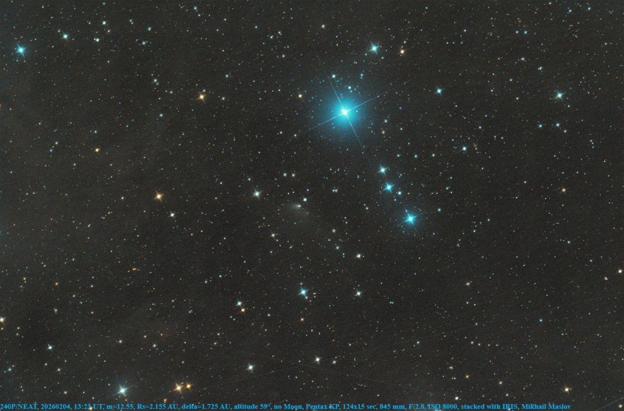 В Новосибирске запечатлели отколовшийся от кометы 240P/NEAT фрагмент яркостью в 30 раз ниже, чем у самого объекта. Об этом сообщили ТАСС в НГУ.