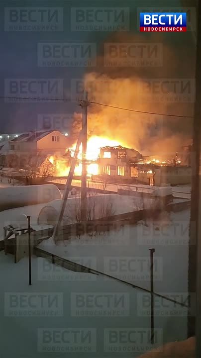 В посёлке Садовый под Новосибирском рано утром загорелся двухэтажный частный дом на две семьи.