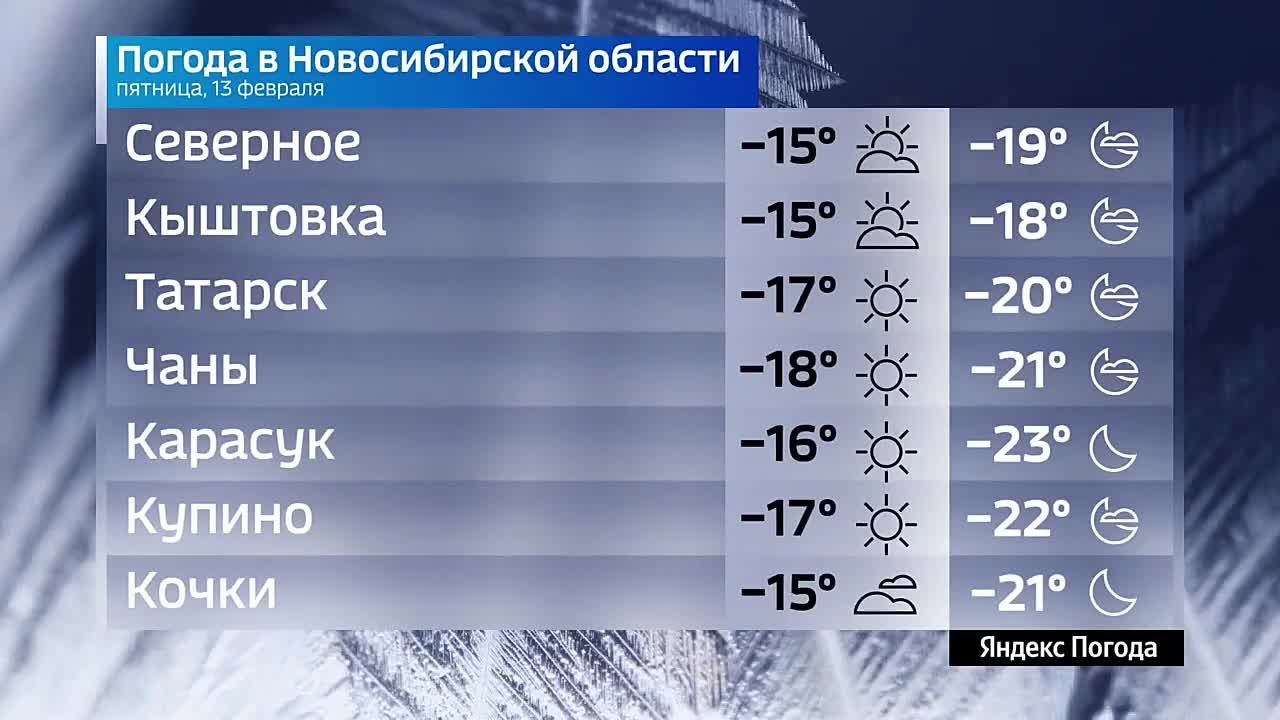 С утра температура не радует: сейчас в Новосибирске –18, днём, по прогнозам, воздух прогреется только до –15. Будет преимущественно без осадков, ветер южный, 4 м/с.Подписывайтесь на канал