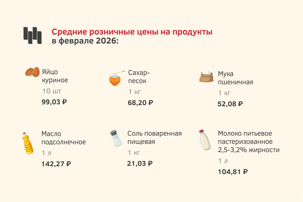 В 2026 году приготовление 30–35 блинов на молоке обойдётся в среднем в 87 рублей 15 копеек. В 2025-м на закупку таких же продуктов пришлось бы потратить чуть больше: 90 рублей 24 копейки. На разницу в цене существенно повлияло снижение стоимости яиц и сахара. А вот молоко, мука, подсолнечное масло и соль за год стали дороже, хотя и незначительно.