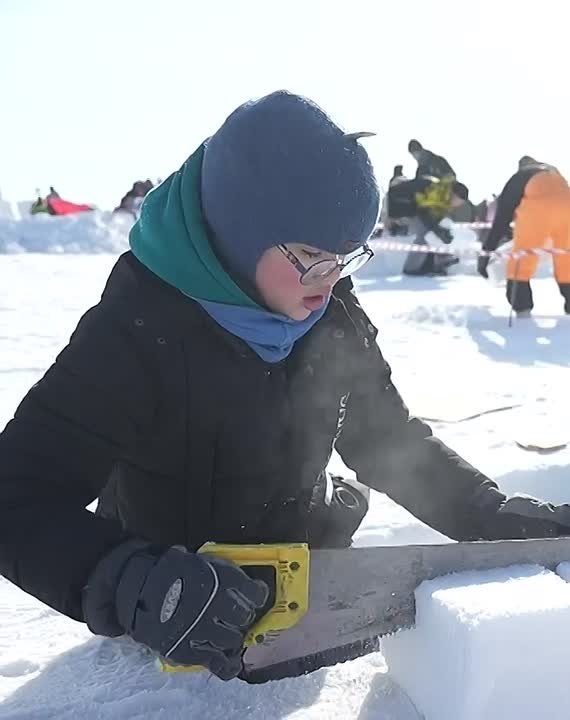 В этом году новосибирцам повезло с погодой. Участники строили хижины семьями и командами — за несколько часов на льду Обского моря вырос целый снежный город.