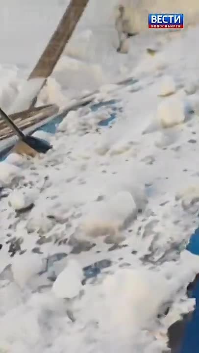 В Новосибирске припаркованную около дома машину повредила масса слежавшегося снега, которая свалилась с кровли здания.