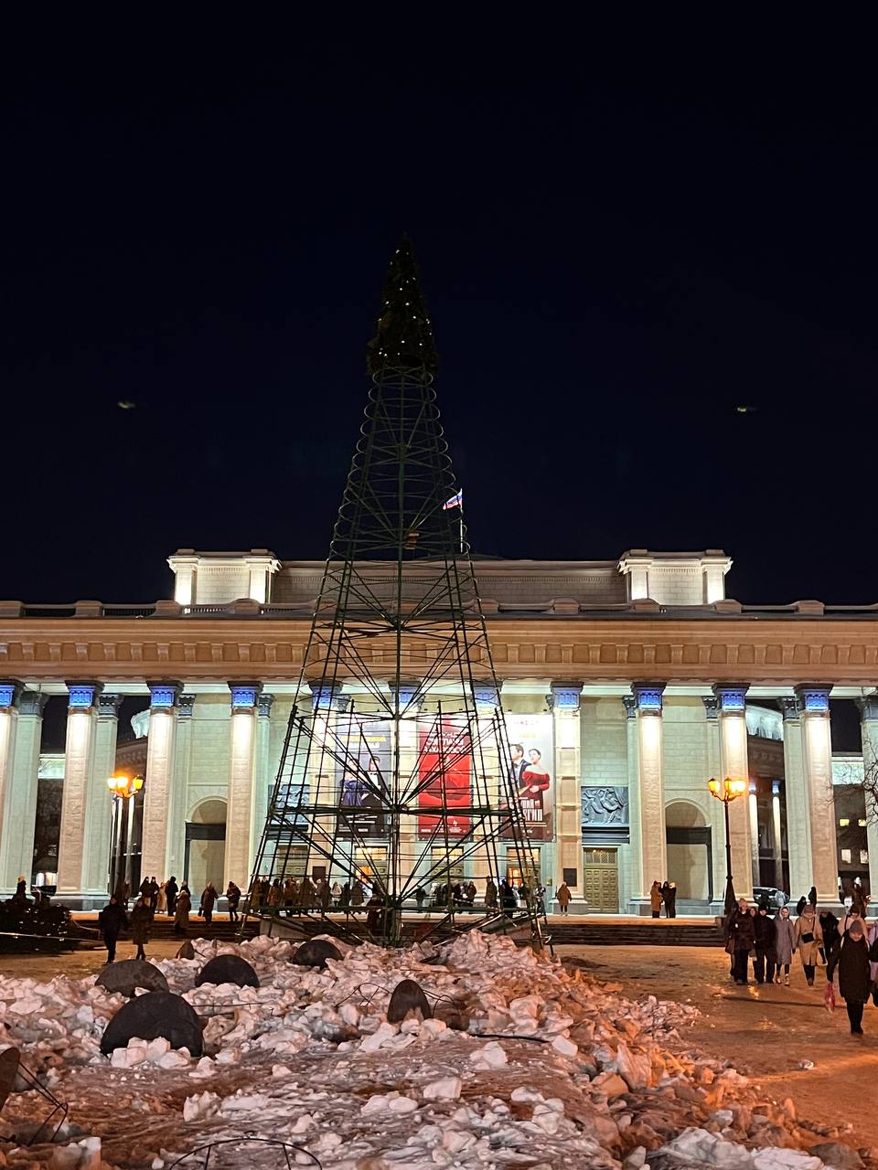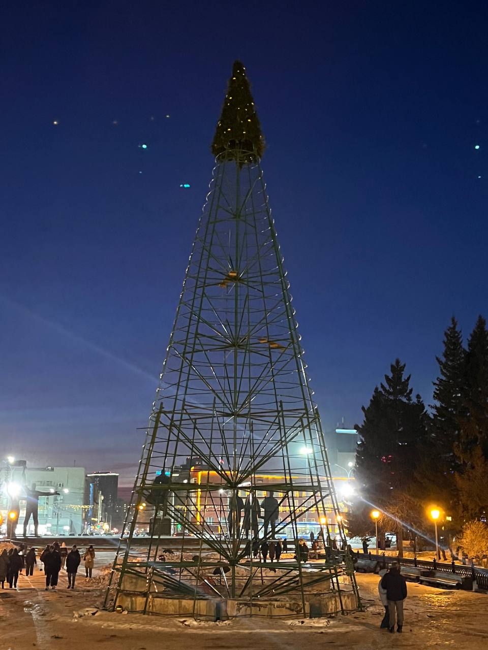 Заключительный аккорд зимних праздников: в Театральном сквере заканчивают разбирать новогоднее оформление. Рабочие уже отключили и вывезли сияющие сферы. От главной городской ёлки остался только 21-метровый железный каркас. Работы по очистке пространства возле НОВАТа и Первомайского сквера подрядчик должен закончить к следующему воскресенью.