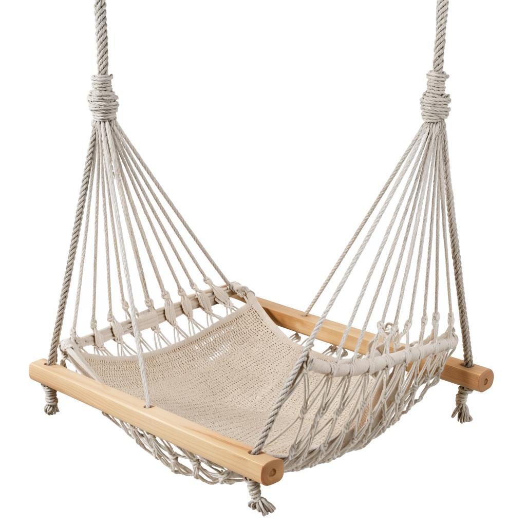 - Комфорт: Деревянная перекладина жестко фиксирует форму сиденья, предотвращая его складывание. Это гарантирует комфорт и облегчает процесс использования: вам не нужно балансировать – просто садитесь в готовую «колыбель». Эргономика тоже на высоте: перекладина поддерживает спину, что превращает отдых в полезное времяпрепровождение.