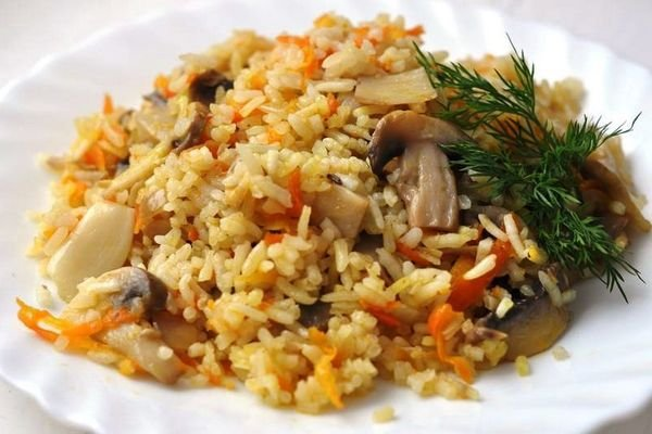 - Отварите рис, оставив его слегка недоваренным. Подготовьте шляпки грибов и взбейте яйца с щепоткой соли;