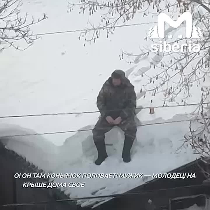 Мужик устал бороться со снегом и накрыл себе скромную поляну прямо на крыше.