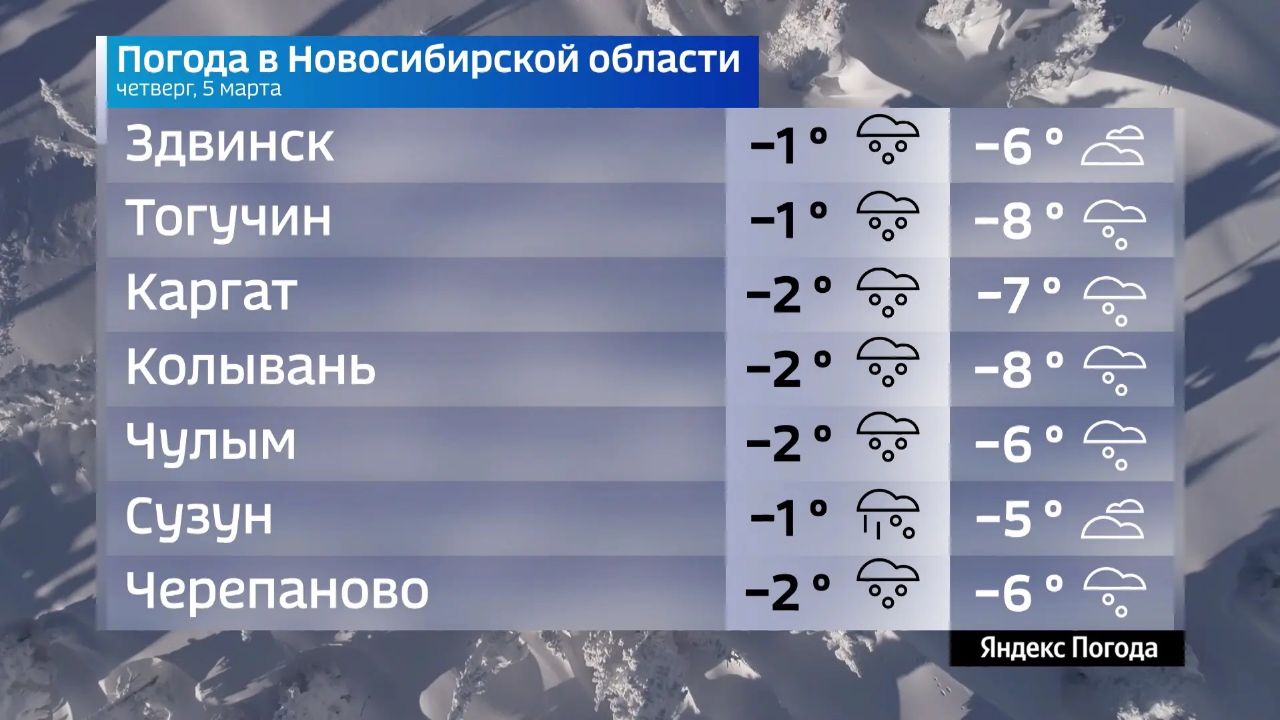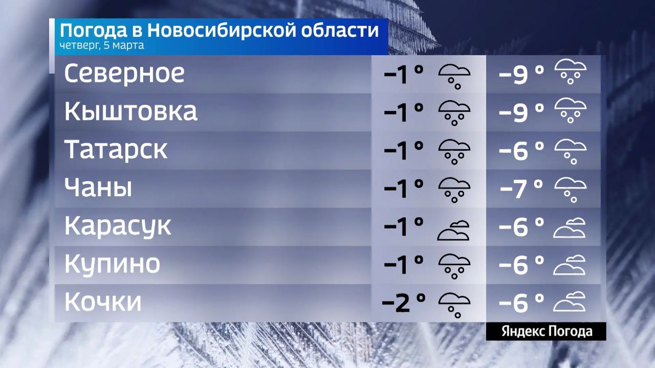 Прогноз погоды на 5 марта 2026 года в Новосибирской области.