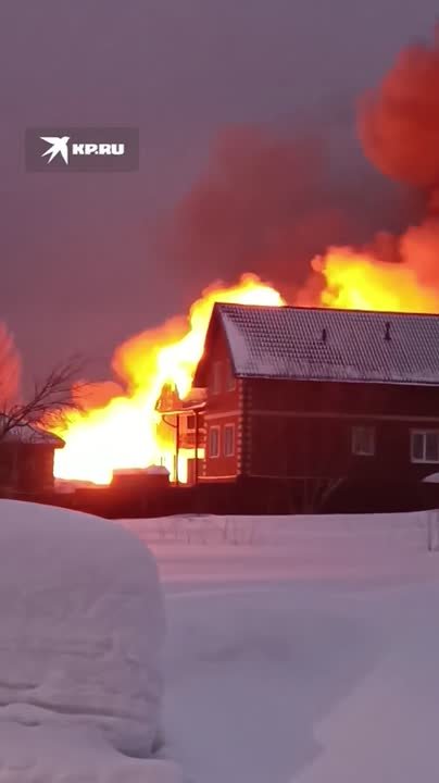 Огонь уничтожил дом, баню, гараж и автомобиль. Из пылающего строения успели выбраться супруги, их двое сыновей и пожилая мать.