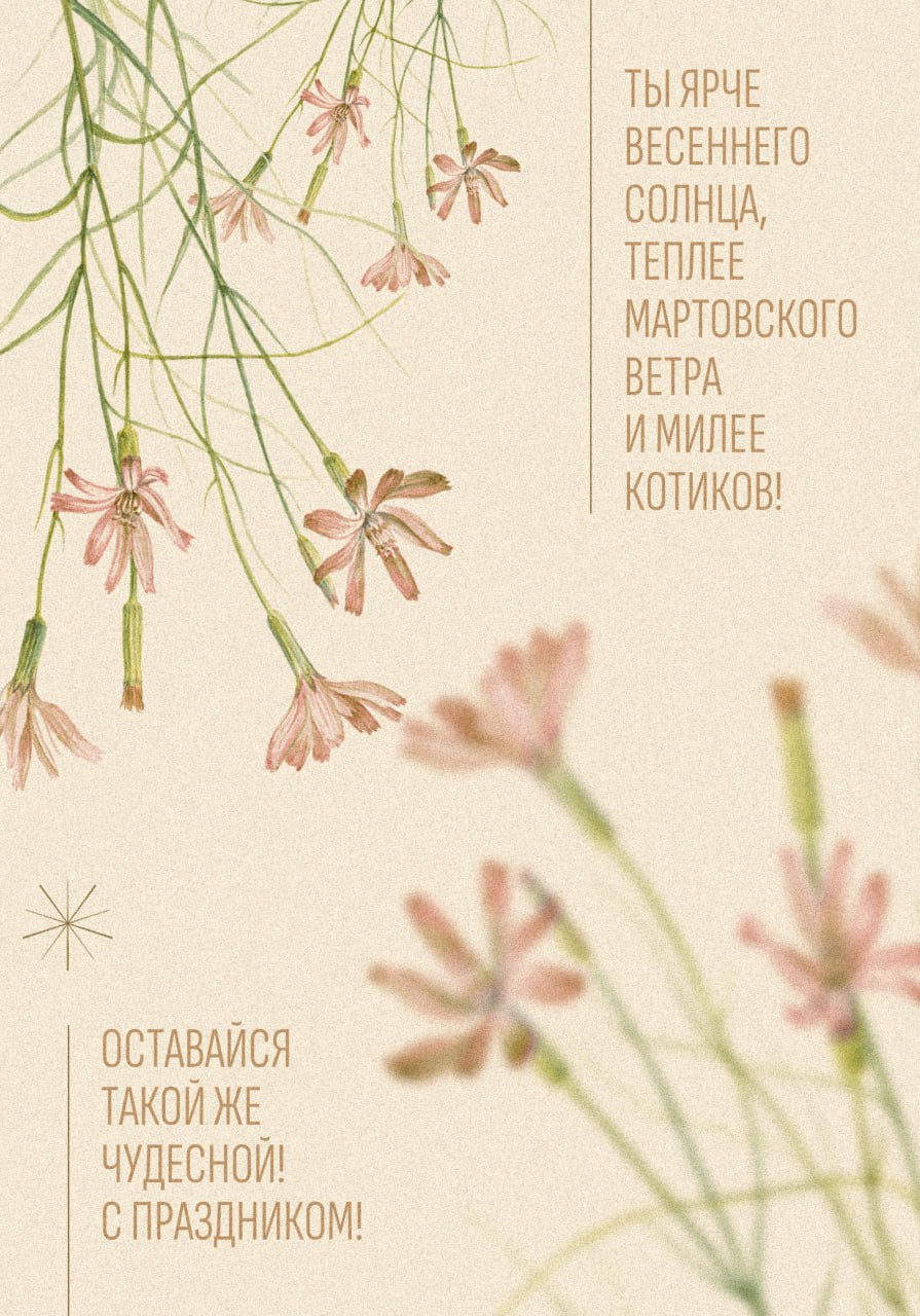 Поздравляем наших подписчиц с праздником весны и благодарим за всё, что вы делаете: вдохновляете, поддерживаете, создаёте, меняете мир к лучшему. Спасибо за вашу силу, доброту и мудрость.