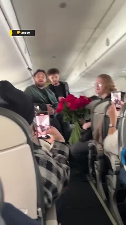 Мужчины, берите пример! Пока одни думают, что подарить на 8 Марта, эти трое парней устроили настоящий перформанс на рейсе Красноярск–Новосибирск.