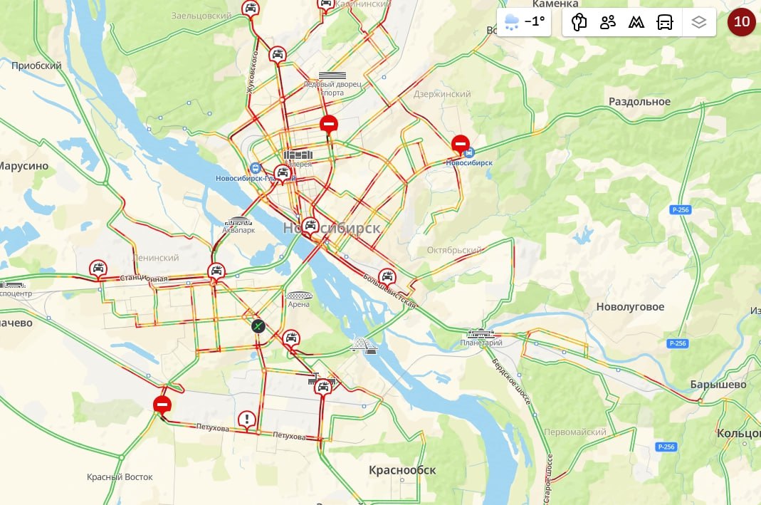 По данным онлайн-карт, хуже всего ситуация в Новосибирске на Фабричной и Большевистской. Загружены проезд Энергетиков, Станционная улица и проспект Димитрова.