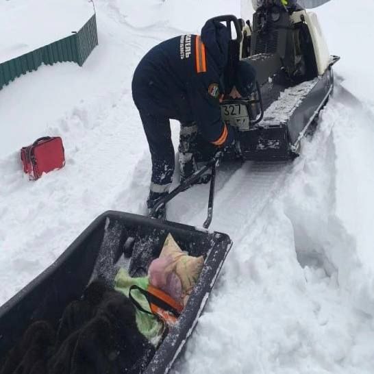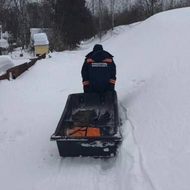 80-летней пенсионерке стало плохо в СНТ "Мечтатель", но скорая не смогла проехать. Пришлось использовать сани. Местные помогали топтать снег, чтобы и они не провалились.