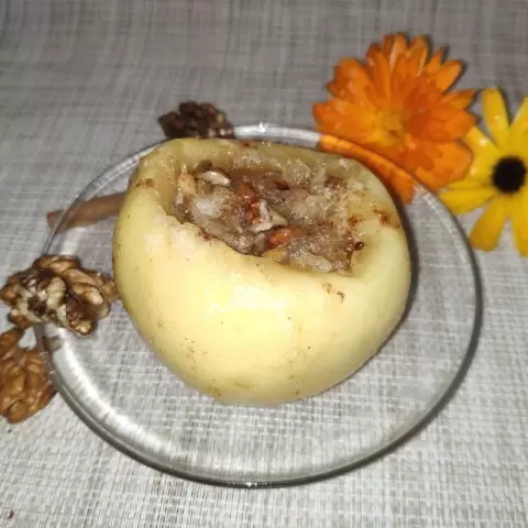 В результате получается удивительно вкусный десерт, который с легкостью скрасит любой холодный вечер. Яблоки, пропитанные медом и орехами, обретут невероятный вкус и ароматы, которые подарят тепло и уют.