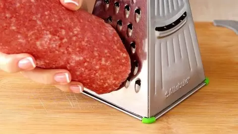 Для начала колбасу следует крупно натереть. Именно сырокопченая колбаса придаст блюду особый аромат и насыщенный вкус. Далее, с помощью крупной терки, натереть кусок сыра, добавив его позже к основным ингредиентам.