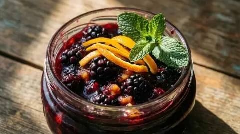На помощь приходит яркий апельсин с его сладостью и слегка горькой ноткой цедры. Эта цитрусовая симфония разбудит глубину вкуса ежевики, превращая варенье в настоящий кулинарный шедевр. Такое лакомство не просто сладкий десерт, а уникальное сочетание лесных и садовых гармоний, запечатленное в банке.