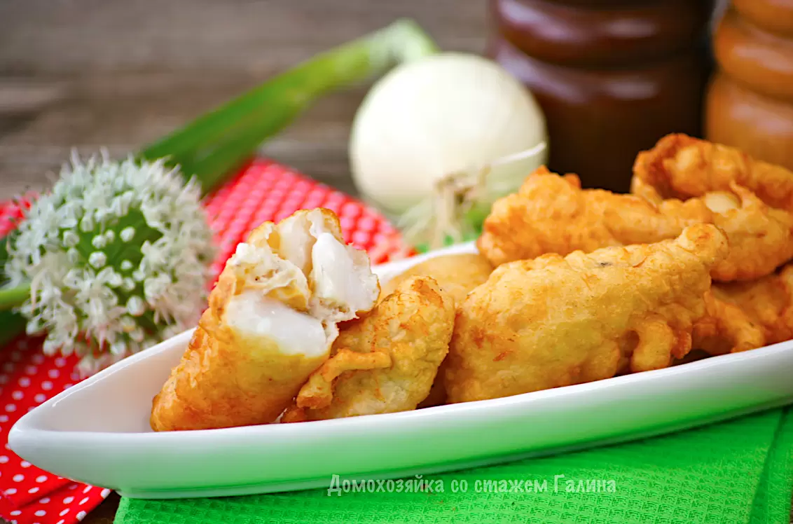 3. Процесс жарки: Разогрейте масло в сковороде до высокой температуры. Проверьте готовность масла, капнув немного теста — если оно всплывает, можно начинать жарить. Обмакивайте каждый кусок рыбы в кляр и опускайте в горячее масло. Жарьте до золотистой корочки, примерно 3 минуты с каждой стороны, не перегружая сковороду, чтобы рыба свободно плавала в масле.