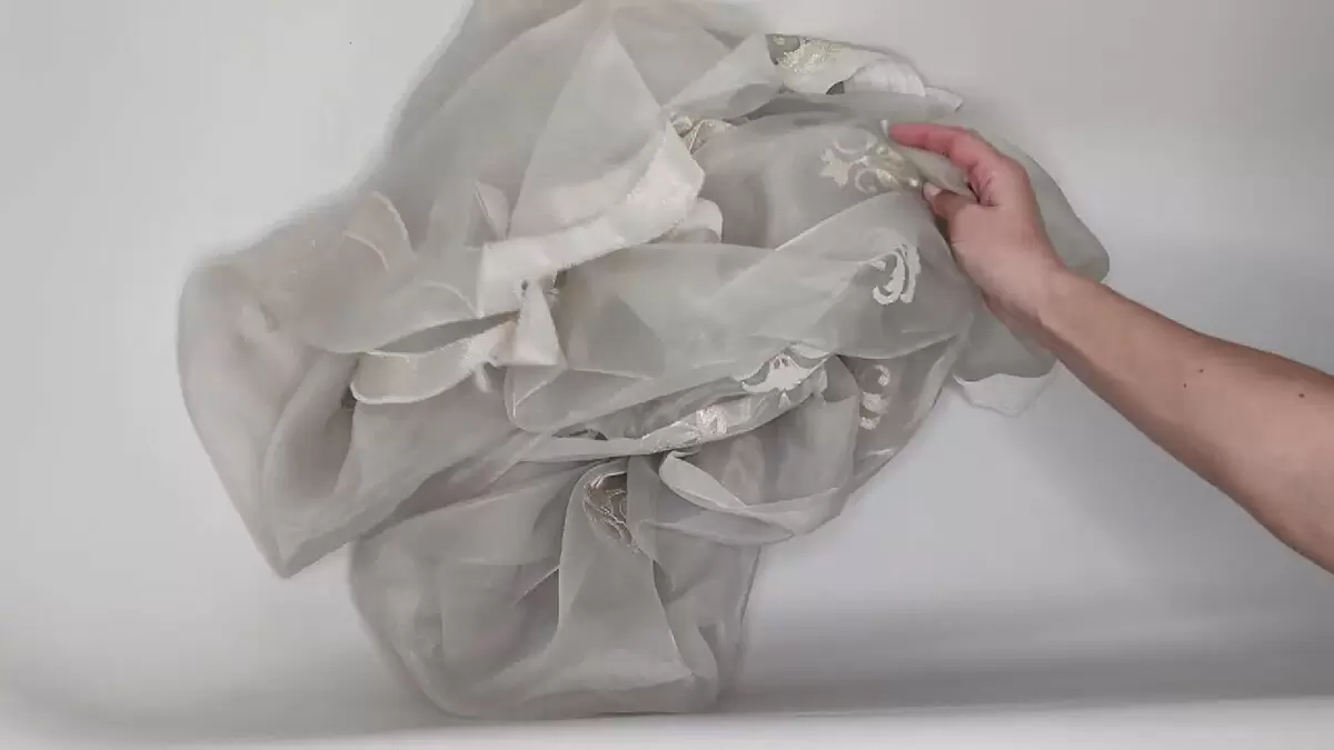 После этого не стоит забывать аккуратно помять ткань руками для достижения наилучшего эффекта. Прополощите тюль под струей воды, чтобы избавиться от остатков порошка. На этом этапе особое внимание стоит уделить тому, чтобы не отжимать изделие, а просто дать воде стечь. Прекрасным завершением процесса станет его развешивание на балконе или улице, чтобы обеспечить естественную сушку.