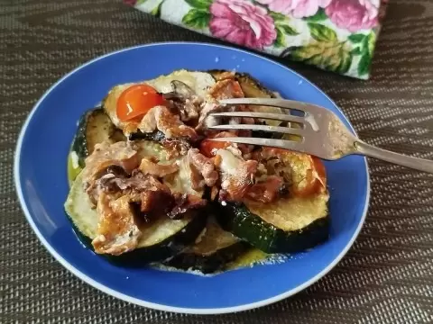 Сначала грибы стоит промыть и отварить в течение 20 минут, а затем слить воду. Кабачок очищается, моется и нарезается на небольшие кусочки, которые жарятся на растительном масле по 2-3 минуты с каждой стороны. Обжаренные кабачки готовы к запеканию!
