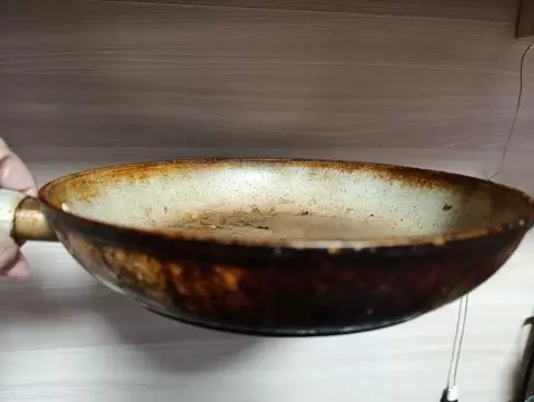 Рекомендуется налить в сковороду воду и уксус, довести до кипения, затем добавить соду. Образовавшаяся шипучая смесь поможет избавиться от налета. После этого посуду нужно промыть обычным способом.