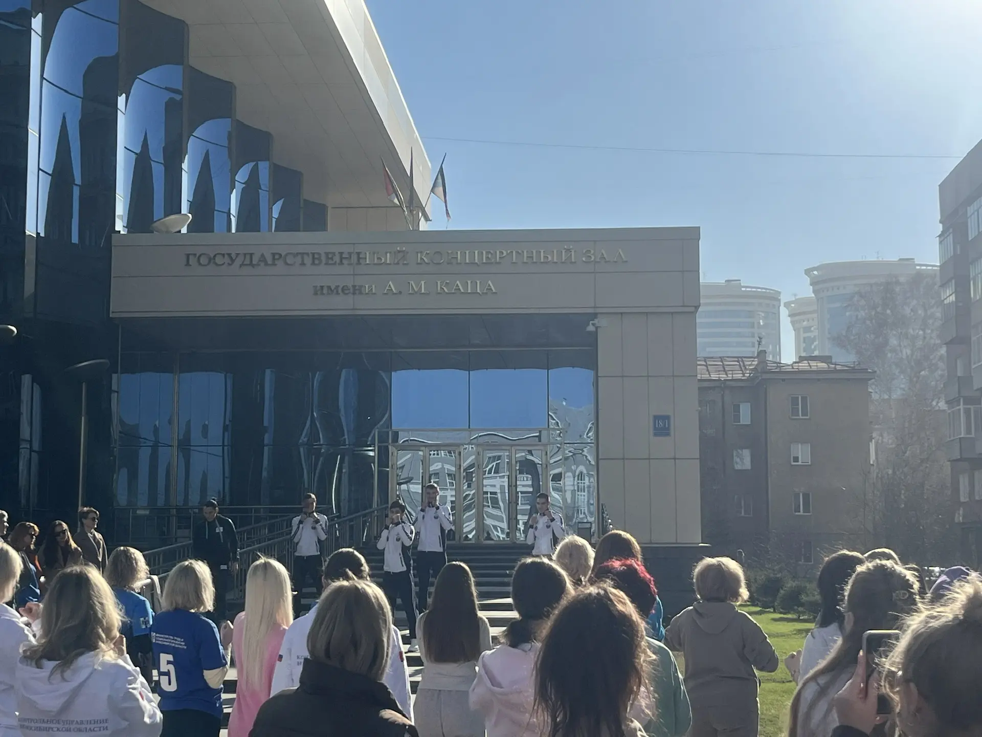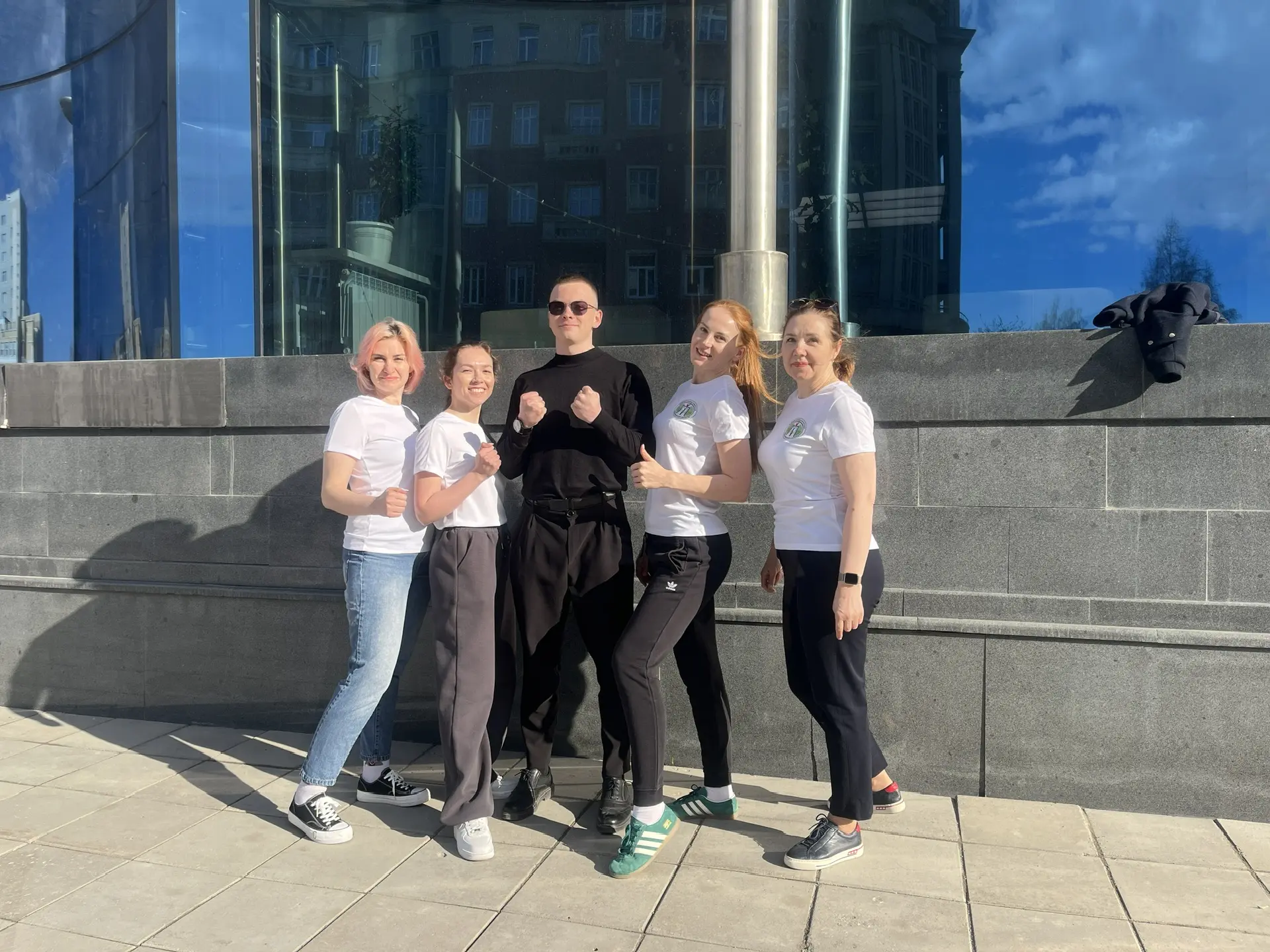 28 апреля у главного входа Новосибирской филармонии прошла зарядка для госслужащих, которую провели чемпионка мира по бодифитнесу Дарья Мануйленкова и другие спортсмены (чемпионы по муайтай)