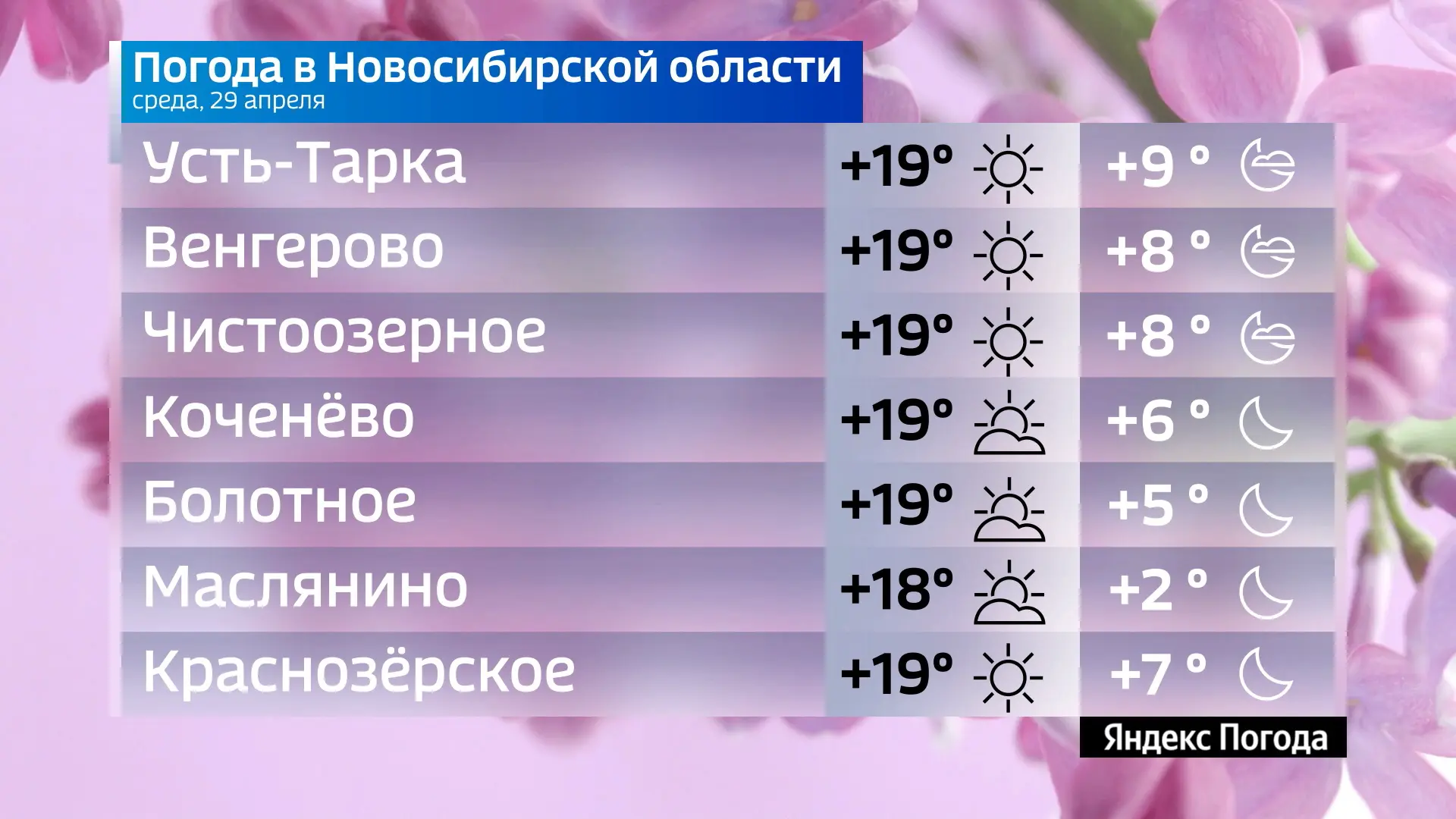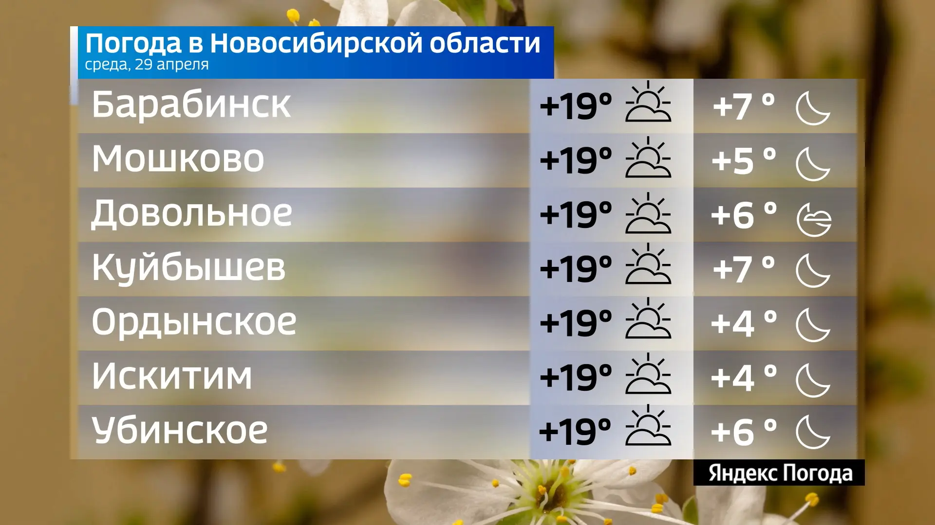 Прогноз погоды на 29 апреля 2026 года в Новосибирской области.