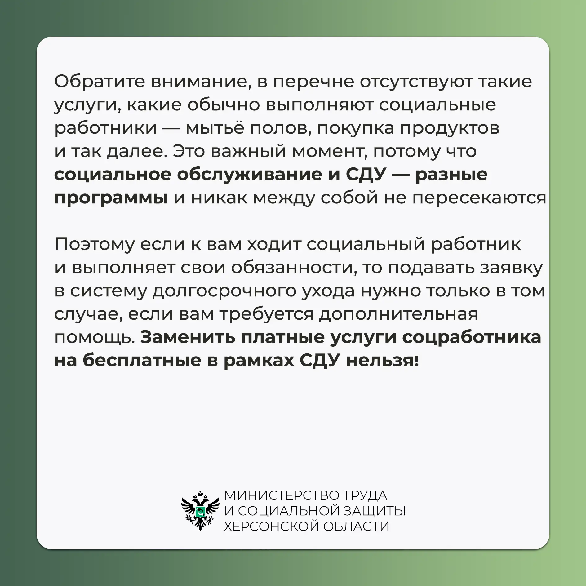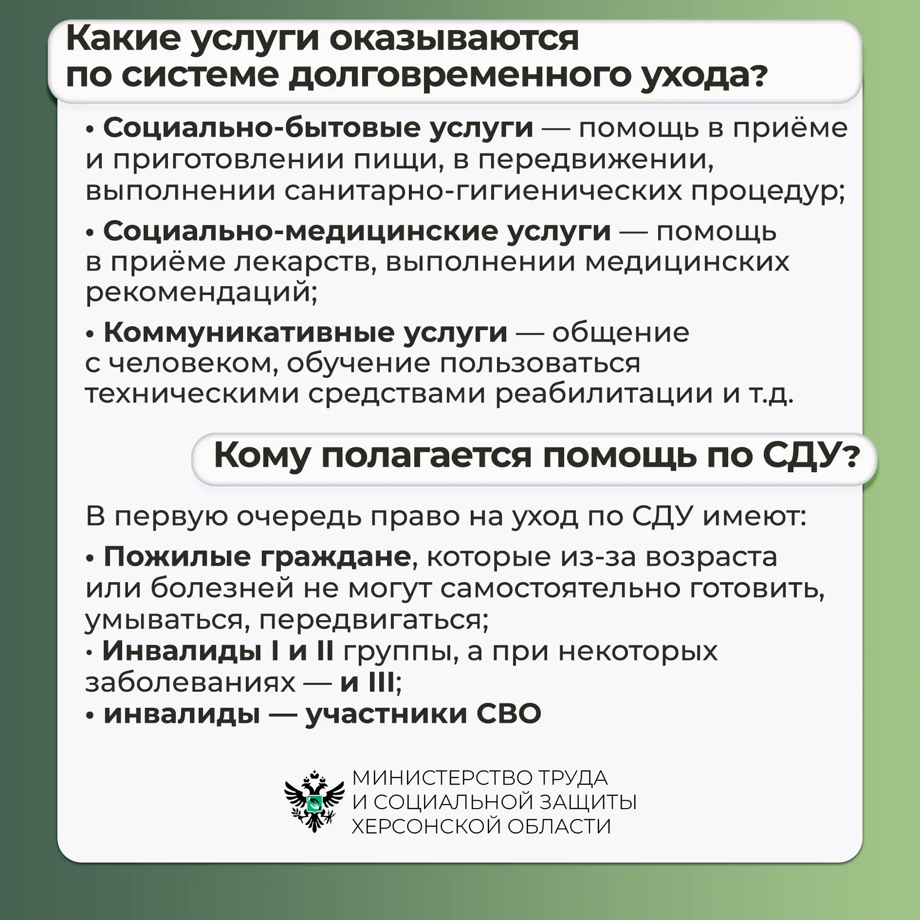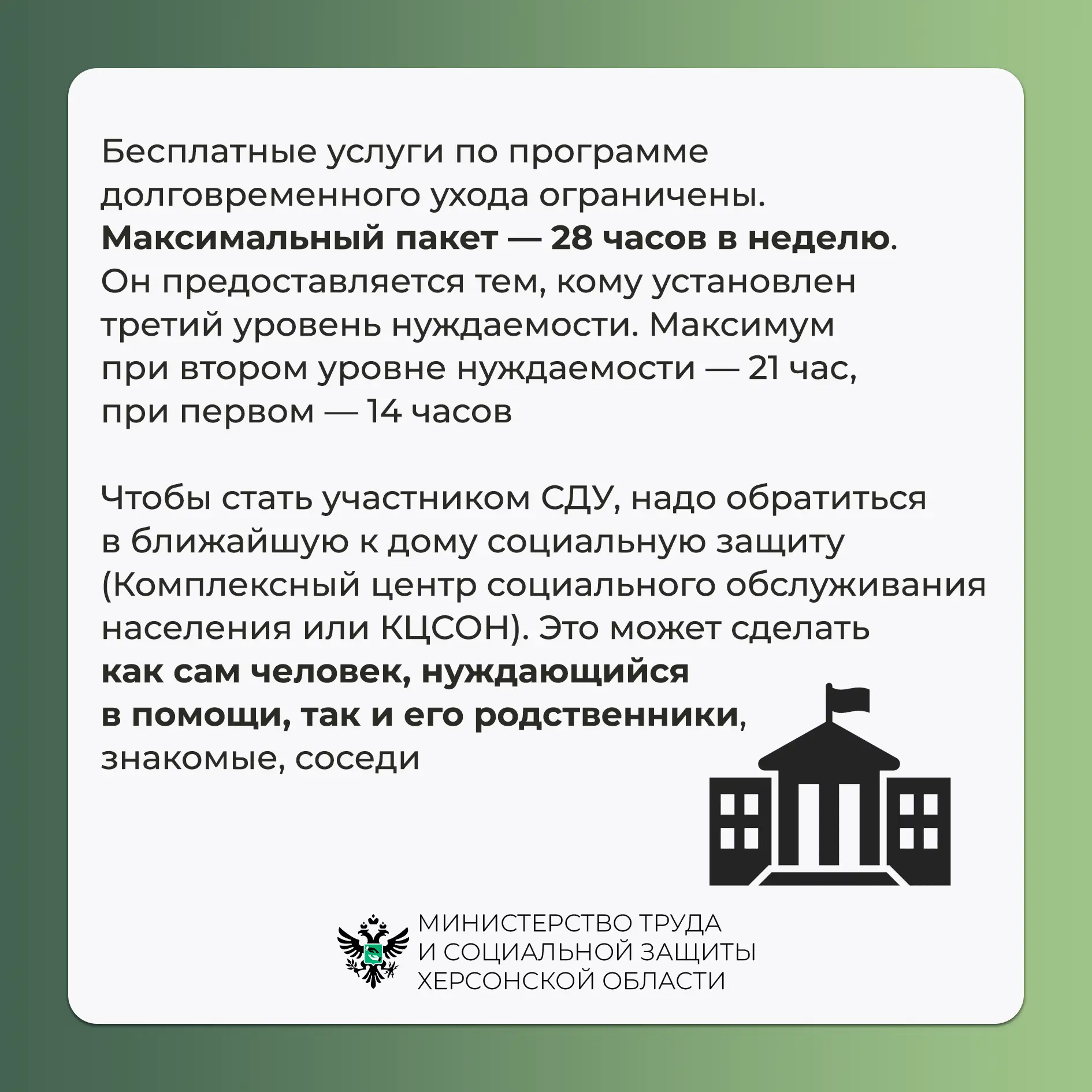 В Херсонской области действует система долговременного ухода