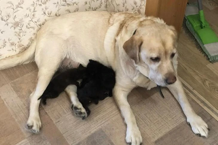 Мама-лабрадор: в Каргате собака Фиеста взяла под опеку четверых осиротевших котят